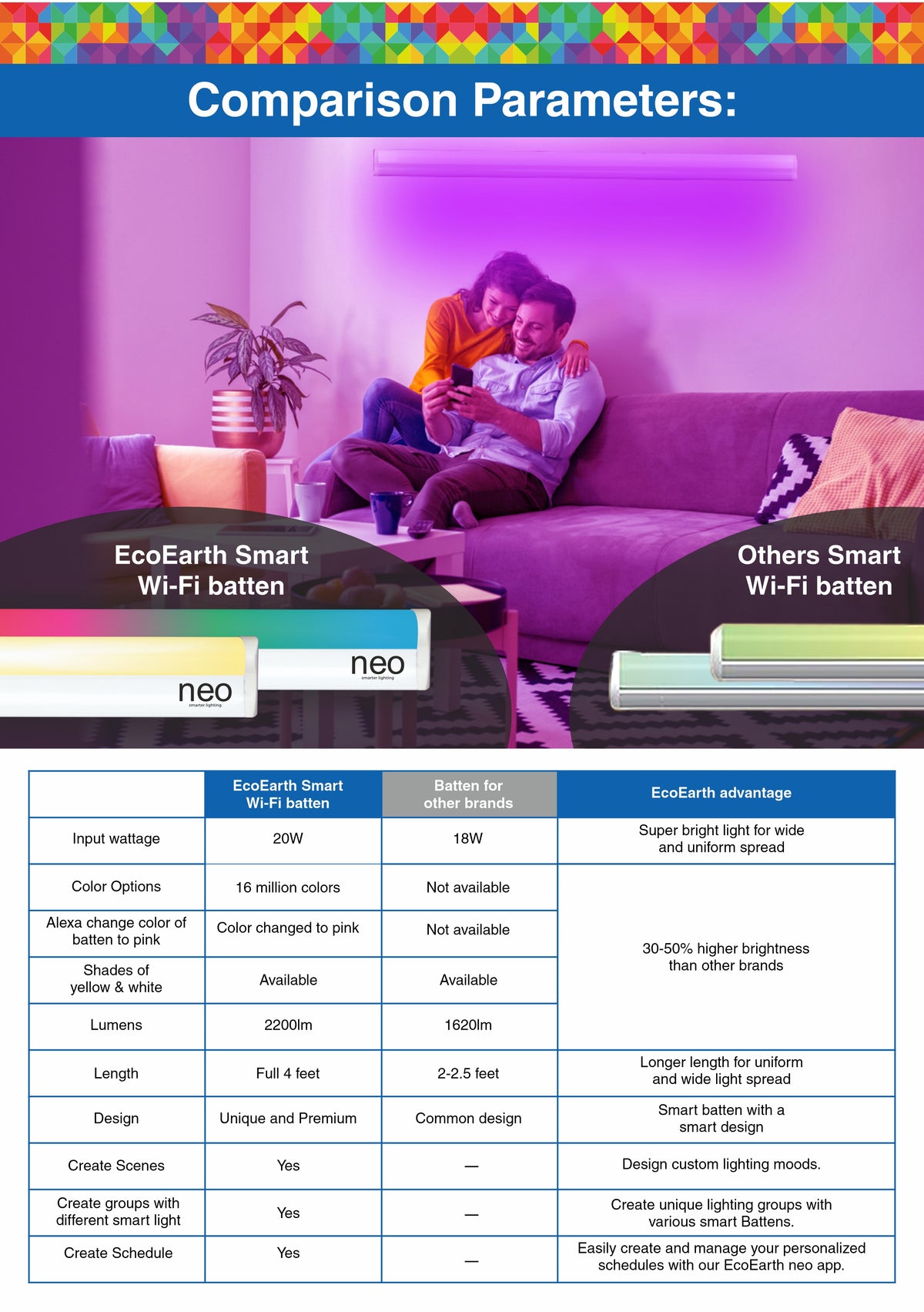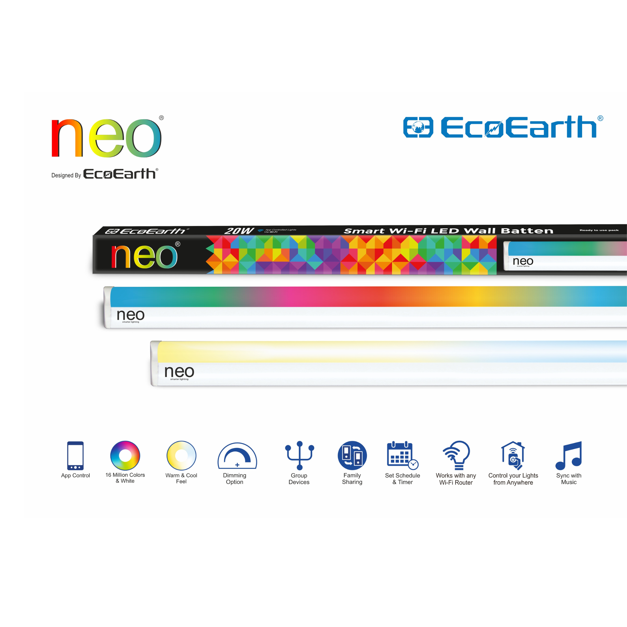 EcoEarth Neo Wi-Fi Smart Tube Light | Compatible with Alexa and Google Home| 20-Watt | Warm to Cool Feel + 16 Million Colors | 4-Feet